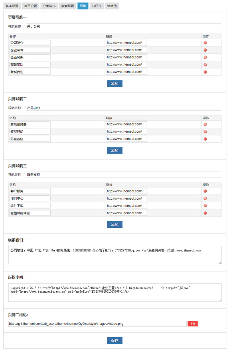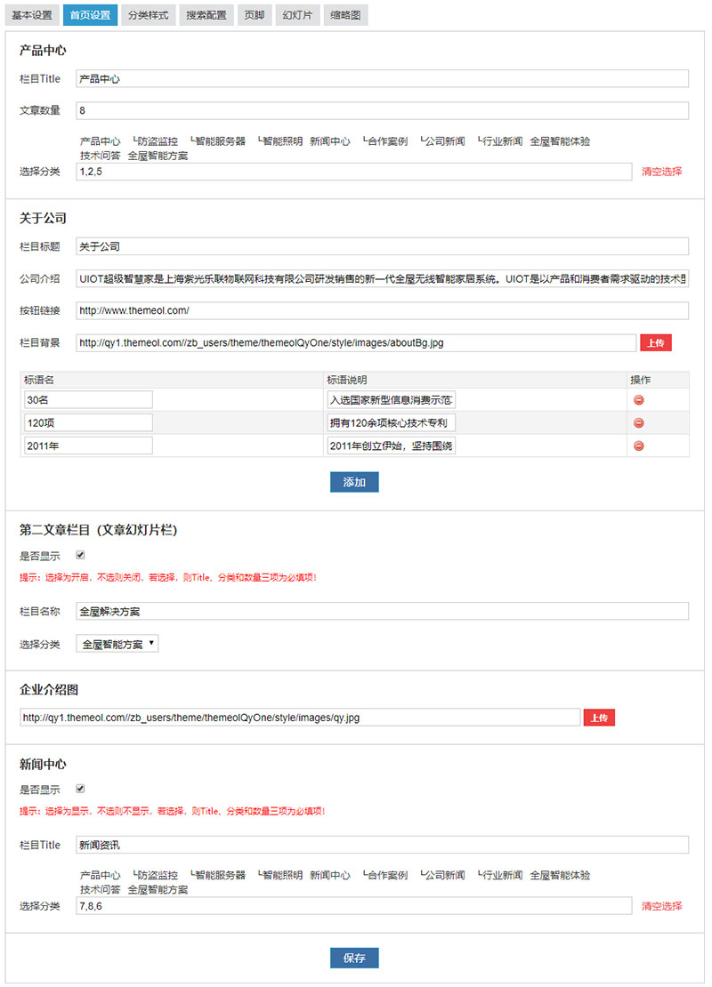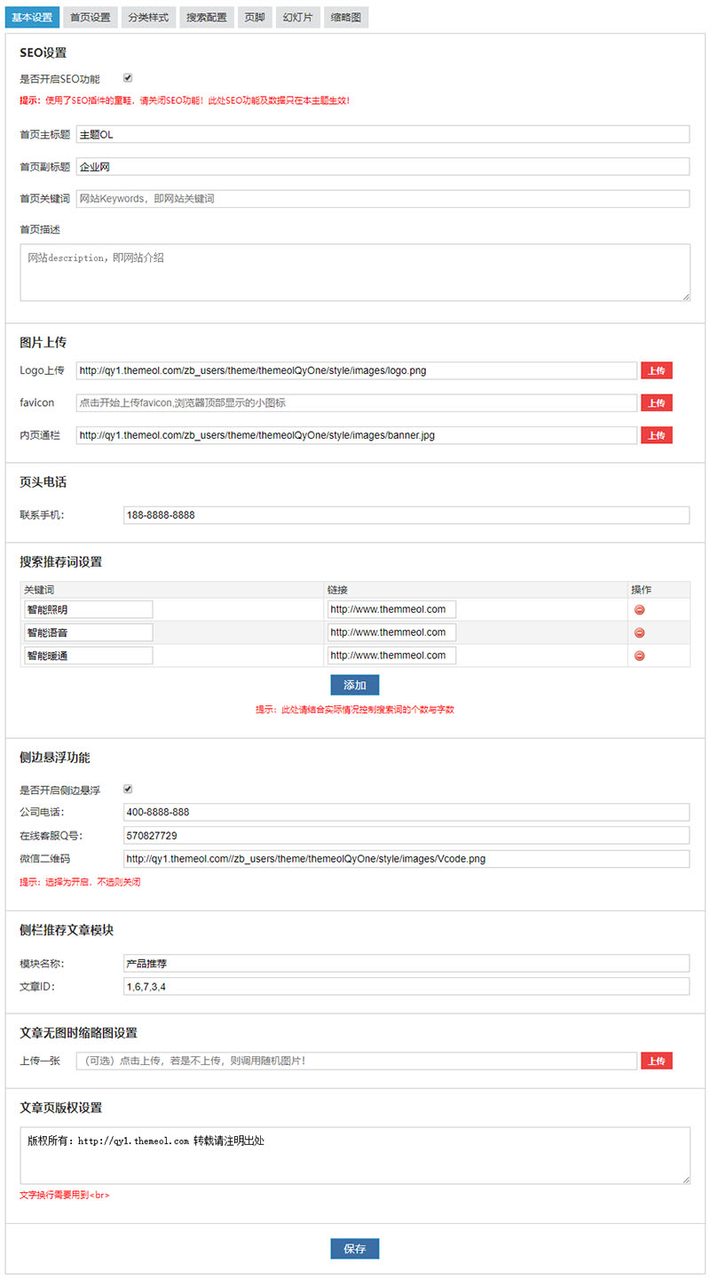 主題后臺(tái)配置截圖一覽: