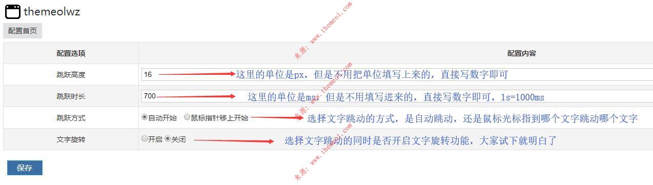 1,跳躍高度設(shè)置:只填數(shù)字,其單位是px(但不用填寫單位),如:16;