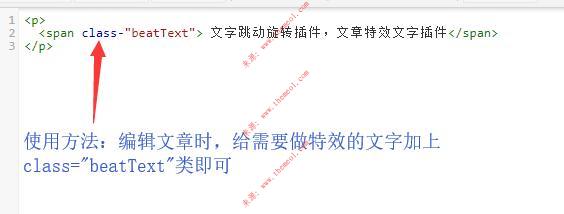 2,從文中找到自己需要設(shè)置特效的文字,并添加上class="beatText"類,如下圖: