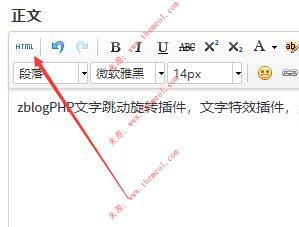 1,在文章編輯完成時,點擊編輯器上的‘HTML’將編輯器的模式改為HTML模式,如下圖: