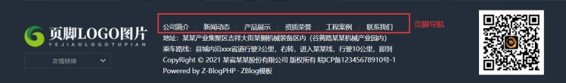 藍色營銷型ZBlog企業(yè)主題themeolQyTwo的“頁腳”設置教程