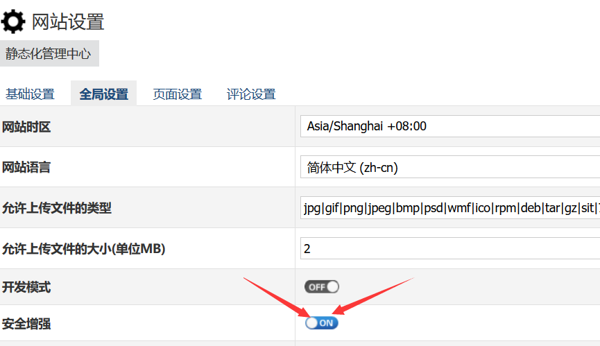 ①網(wǎng)站原生后臺(tái)->網(wǎng)站設(shè)置->安全增強(qiáng),如下圖: